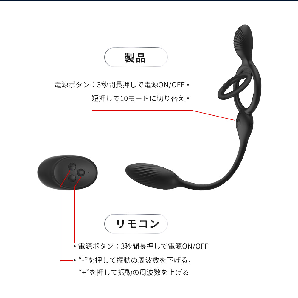 | サイズ | 長さ:300mm 振動エッグの直径:25mm コックリングの直径:30mmおよび43mm |